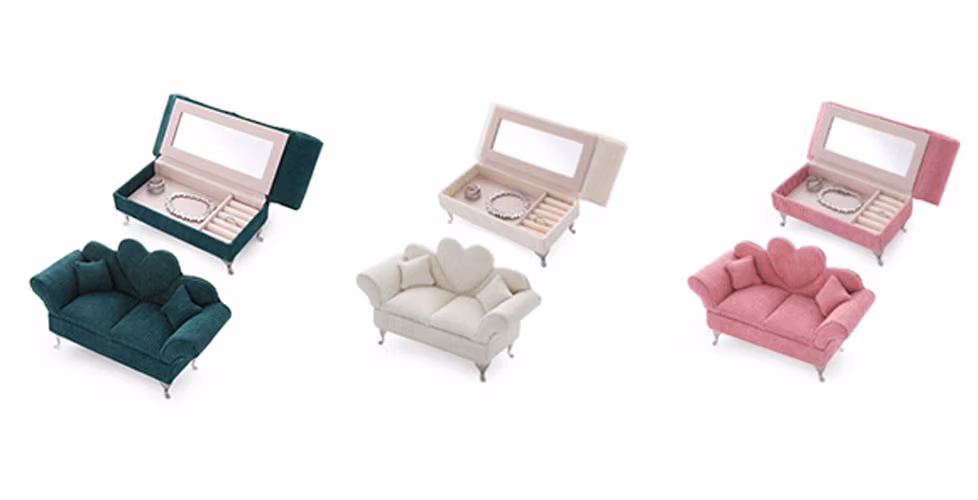 Kasanova arricchisce la cura della casa e dei dettagli con il Divanetto portagioie 24×13×10 cm, un complemento elegante e originale pensato per custodire i tuoi gioielli con stile. Il suo design raffinato, ispirato a un piccolo divano, unisce funzionalità e gusto decorativo, diventando anche un piacevole elemento d’arredo. Disponibile nei colori verde, rosa e crema.