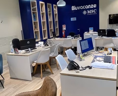 L'agenzia viaggi fa parte del gruppo Bluvacanze che tratta i migliori tour operator sul mercato: MSC, Going, Alpitour, Eden, Quality Group. Si organizzano viaggi di nozze, vacanze corto e lungo raggio, escursioni accompagnate.