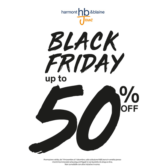 HARMONTeBLAINE--BLACK-FRIDAY up to 30% OFF Promozione valida, dal 19 novembre al 1 dicembre, sulla collezione H&B in vendita presso i Centri Commerciali Non cumulabile con altre iniziative in corso. Sono escluse dalla promo: gli Essentials e i Peluches.