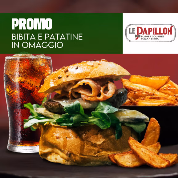 OPENING DAY – il 26 febbraio 2026 Menù speciale opening*: Burger a scelta tra le proposte del giorno, patatine fritte e bibita A € 4,90 Valido sui burger disponibili nella giornata di inaugurazione. *SU PRENOTAZIONE: trovi il link sui profili social di Le Papillon
